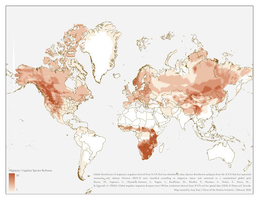 As I was working to create this map, Boyer et al. published a similar dataset, providing global-scale migratory ungulate species richness derived from the same IUCN Red List spatial distribution data. This, too, reinforced the importance of the Transboundary Rocky Mountains, with equivalent species richness only present in southern Africa and small parts of Asia and Scandinavia (Fig. 2).